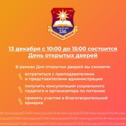 ВНИМАНИЕ! Расписание мероприятий на 13.12.2025 - День открытых дверей. Ждем гостей в основном здании по адресу ул. Есенина 34, к 2